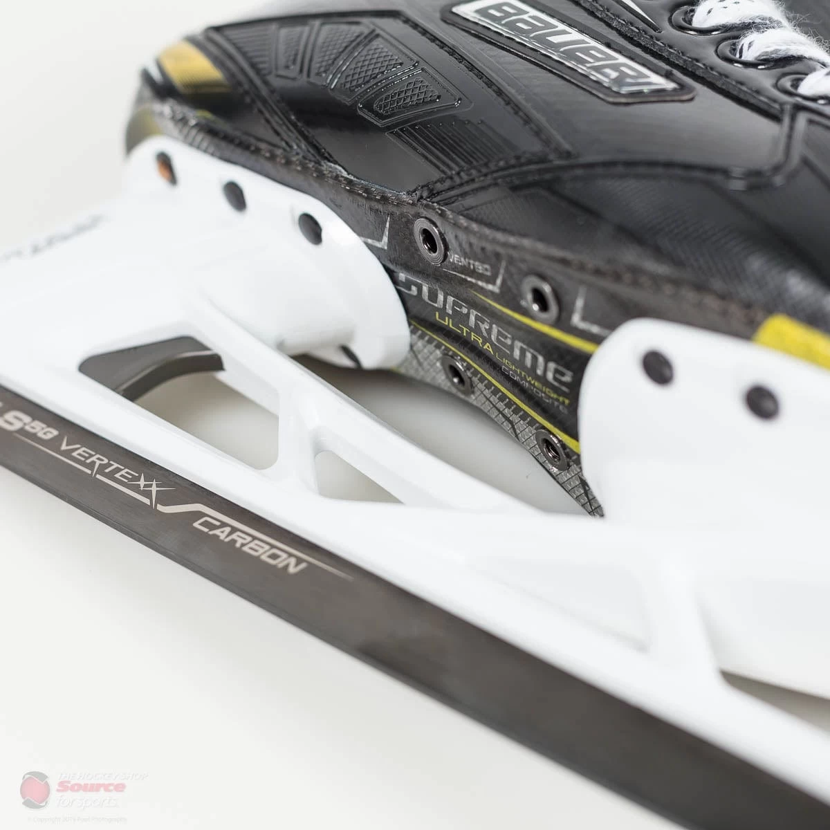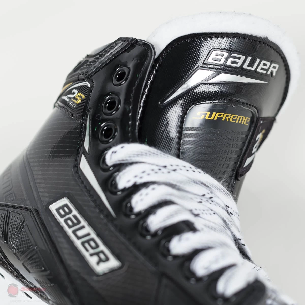 The first thing that Bauer changed on the boot of the Supreme 2S Pro goalie skate is the fit of the ankle. The heel lock of the skate has been improved, and helps keep the goalies foot as far back in the skate as possible. As well, Bauer has added an eyelet comfort pad that helps with the potential of the ankle bone rubbing on the eyelets on the inside edge of the skate.