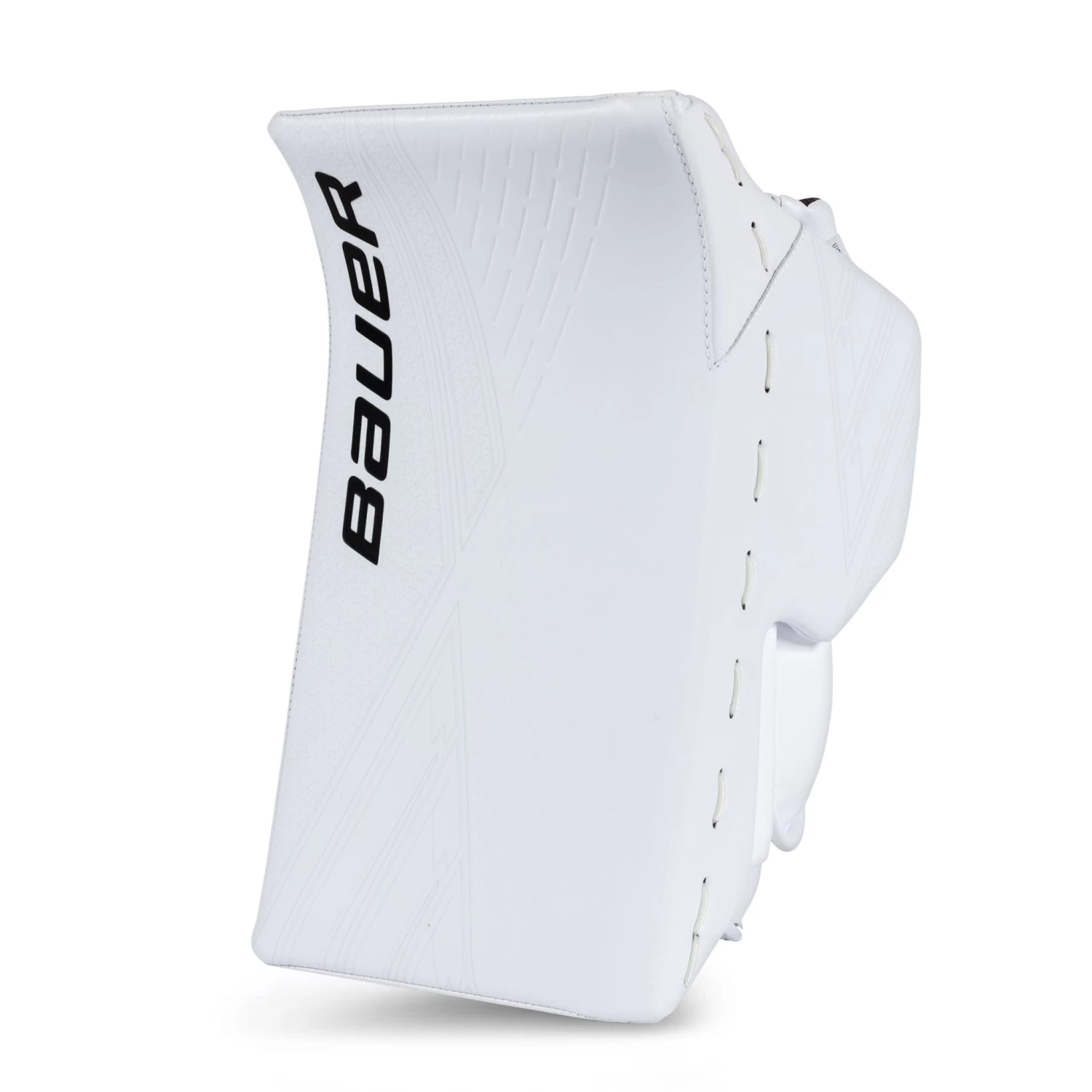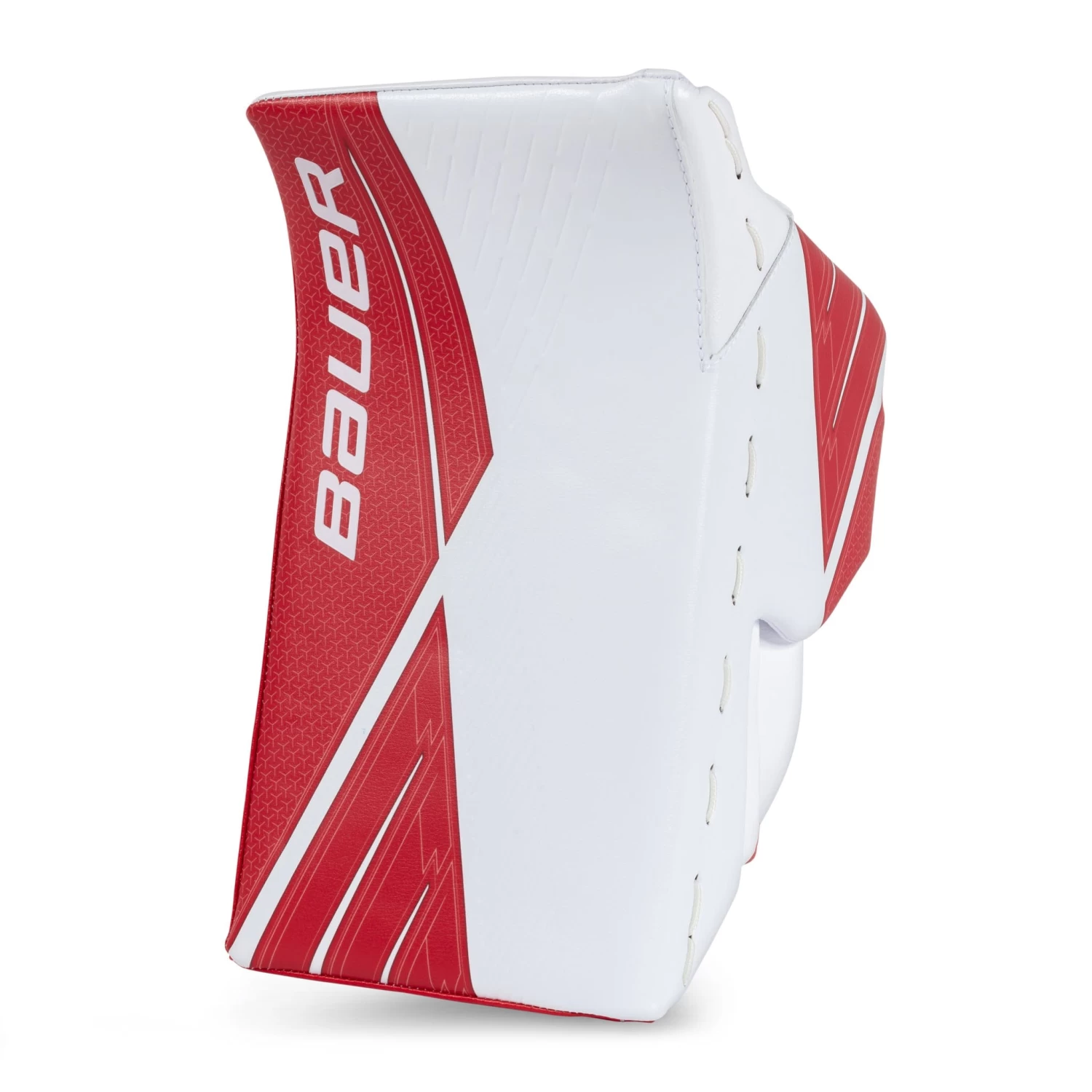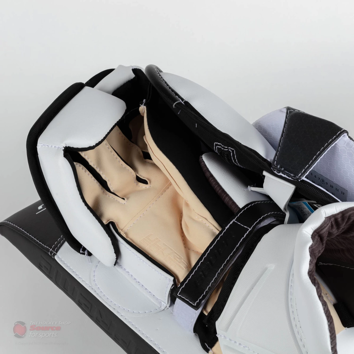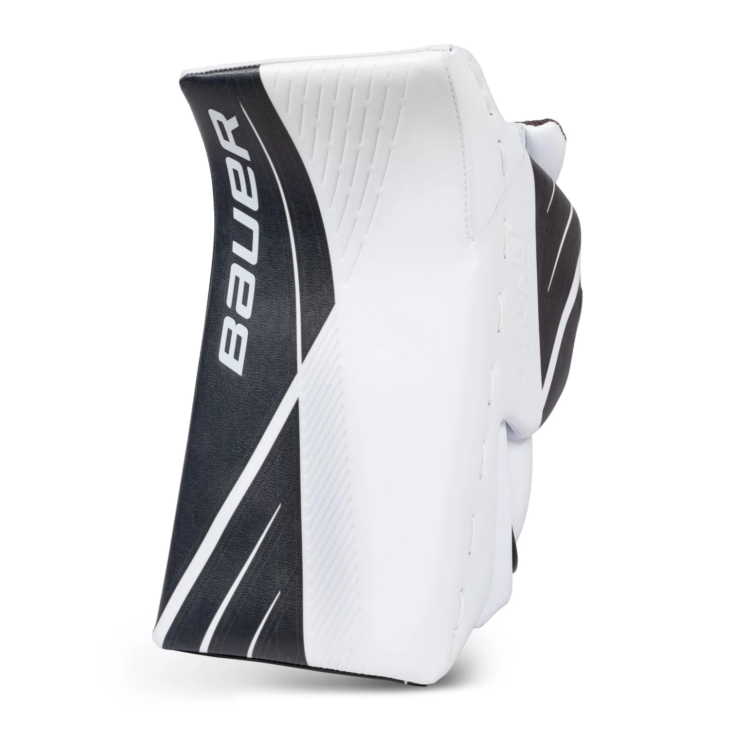 The shape of the blocker is going to be extremely familiar to those who have used a Supreme blocker recently. The side hand shape and protection is similar to the 2S Pro, providing protection with Bauer’s CURV Composite and Shocklite materials. Stock with Bauer’s UltraSonic blocker, there is no thumb pillow but can be added in when going the custom route.