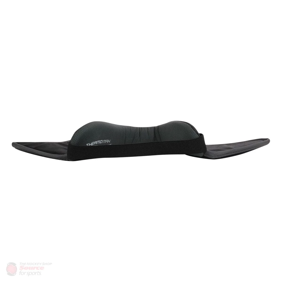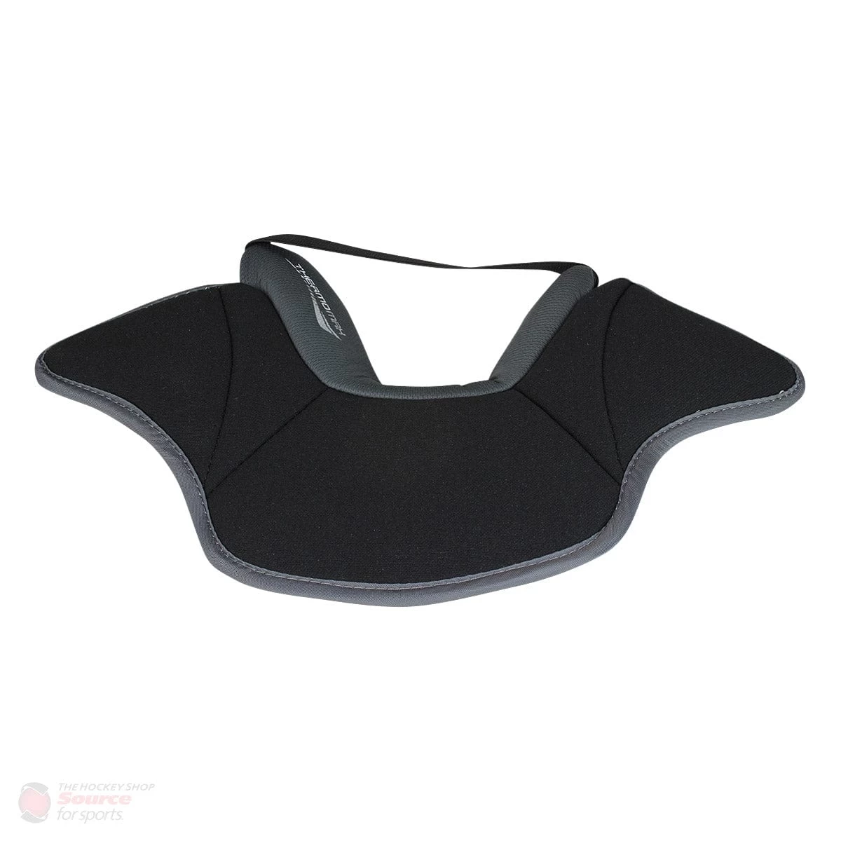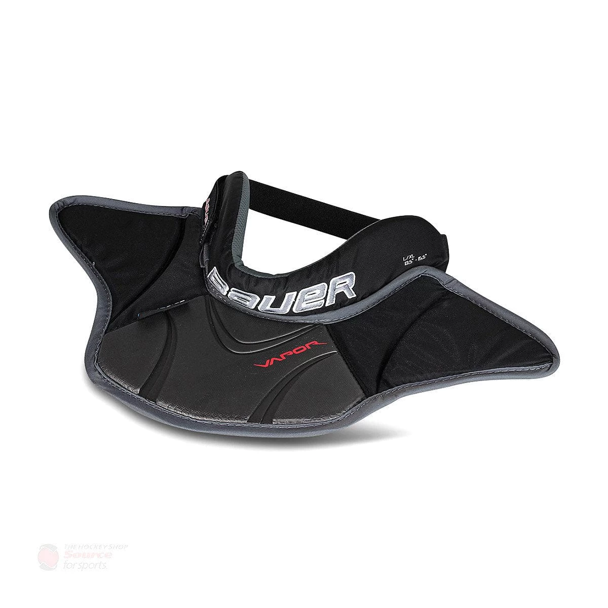 The Bauer Vapor Senior Goalie Neck Guard is a pro style offering that delivers improved comfort rather than BNQ certification. Its ergonomic neck collar design features extended collarbone wings to give the goaltender additional coverage, compared to models from other companies, and an AEROLITE technology shield for protection. On the inside, the guard has been lined with a moisture-wicking THERMO MAX liner to reduce bacteria build-up and improve airflow.