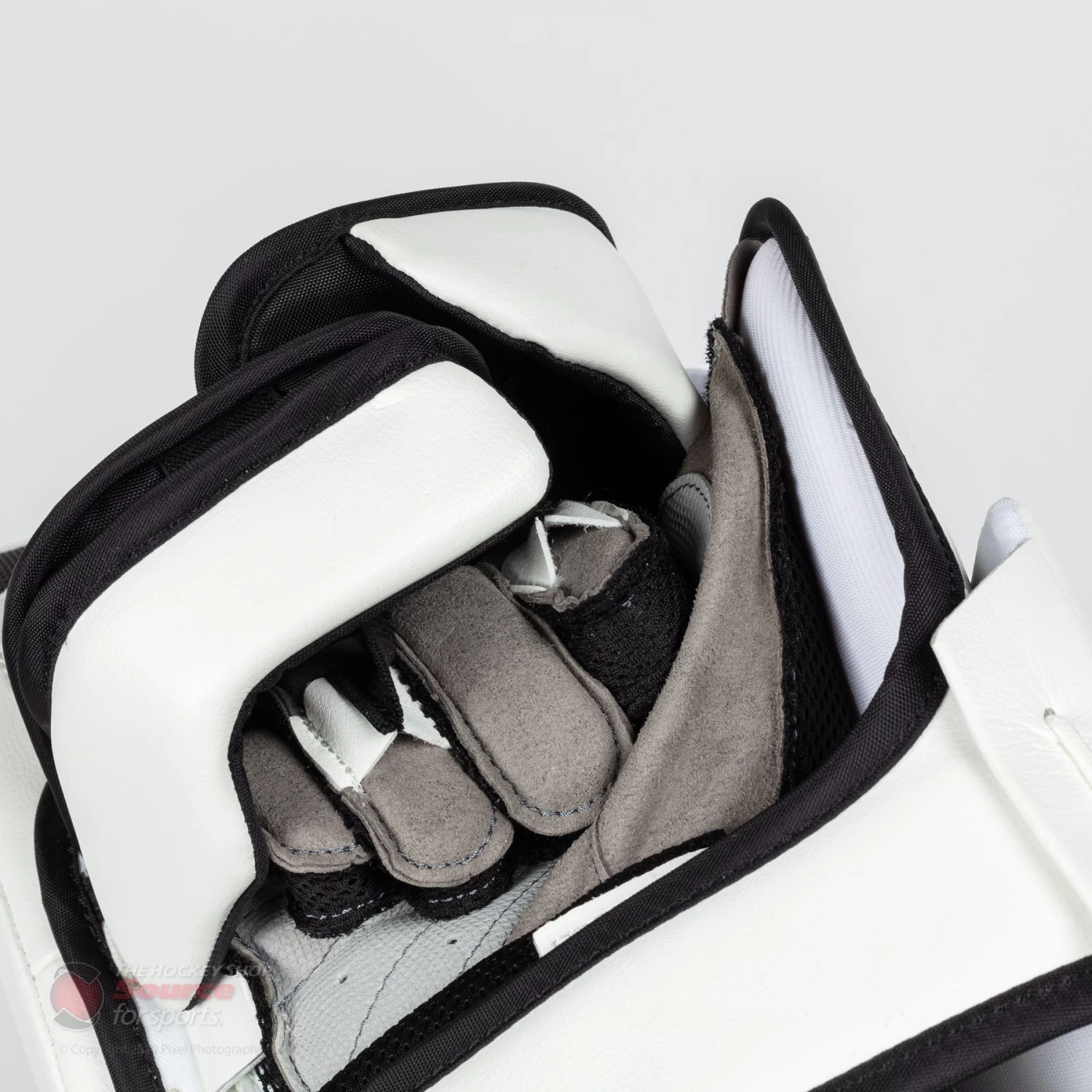The Brian’s G-NETik X Intermediate Goalie Blocker is available in 5 colourways including All White, White/Black, White/Black/Red, White/Red and White/Blue.