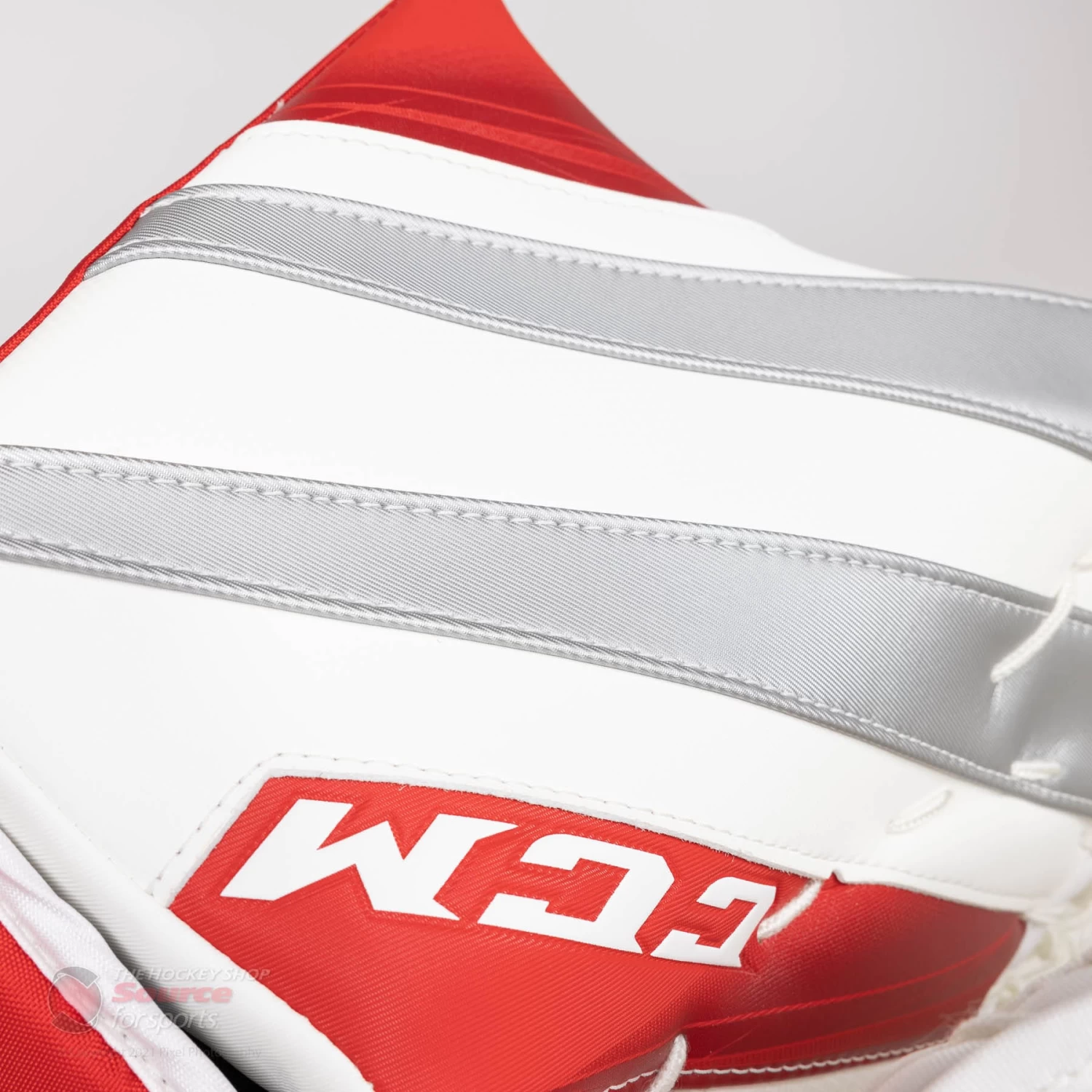 The CCM Extreme Flex 5 Senior Goalie Catcher further advances their 600 degree catch angle gloves, while maintaining the popular design that goalies have come to know and love. The E-Flex 5 is constructed with D30 Smart Foam in the palm, paired with a FlexMotion backhand and cuff which allows for ample protection, while still providing a flexible and customizable fit.