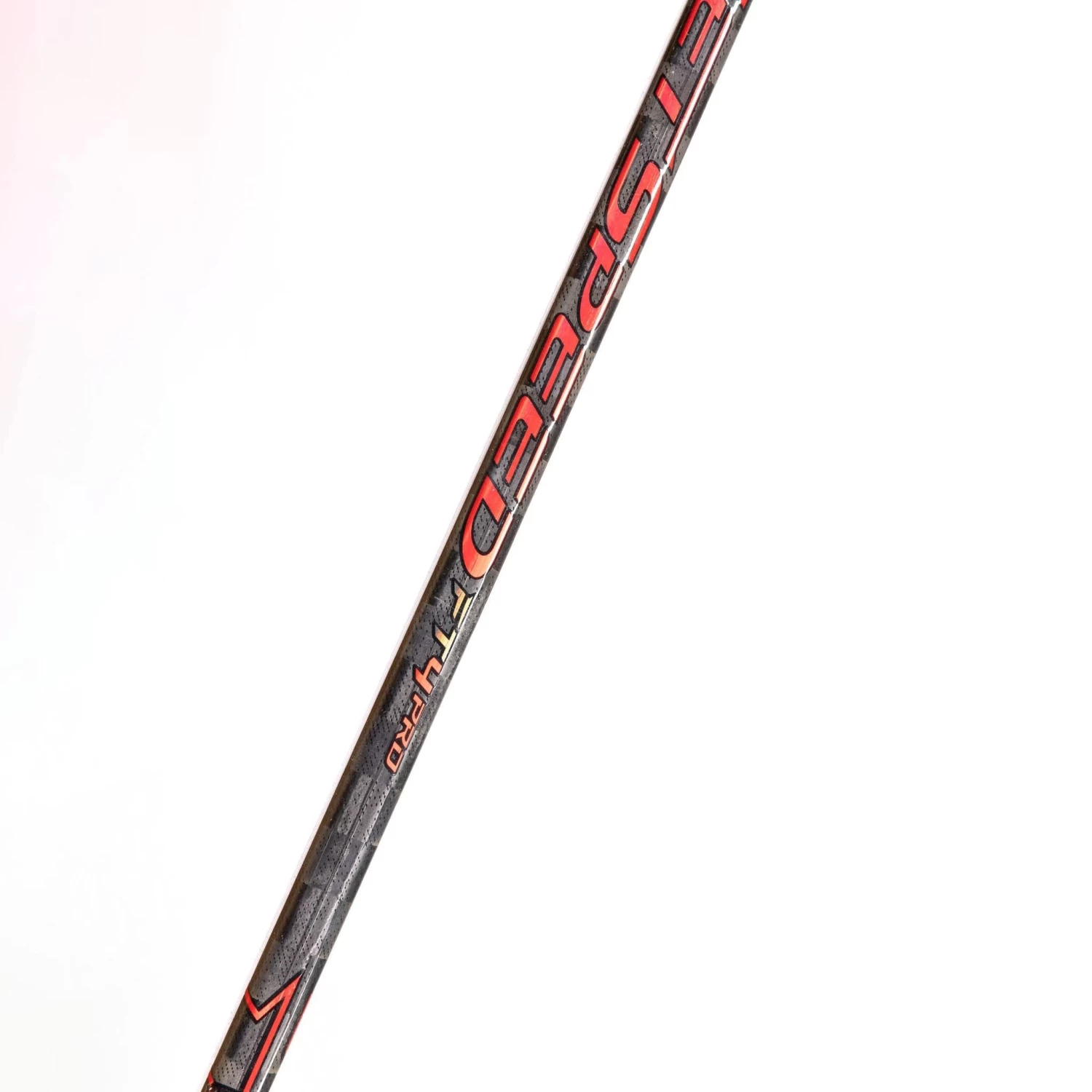 The red rocket strikes again! No longer a secret with pro snipers, be the talk of the league with the new CCM Jetspeed FT4 Pro INT Hockey Stick. Featuring CCM’s most popular hybrid kick-point, R-Geometry, Nanolite Carbon Layering, and the all new Skeleton+ technology, the Jetspeed FT4 Pro will have you scoring from just about anywhere.