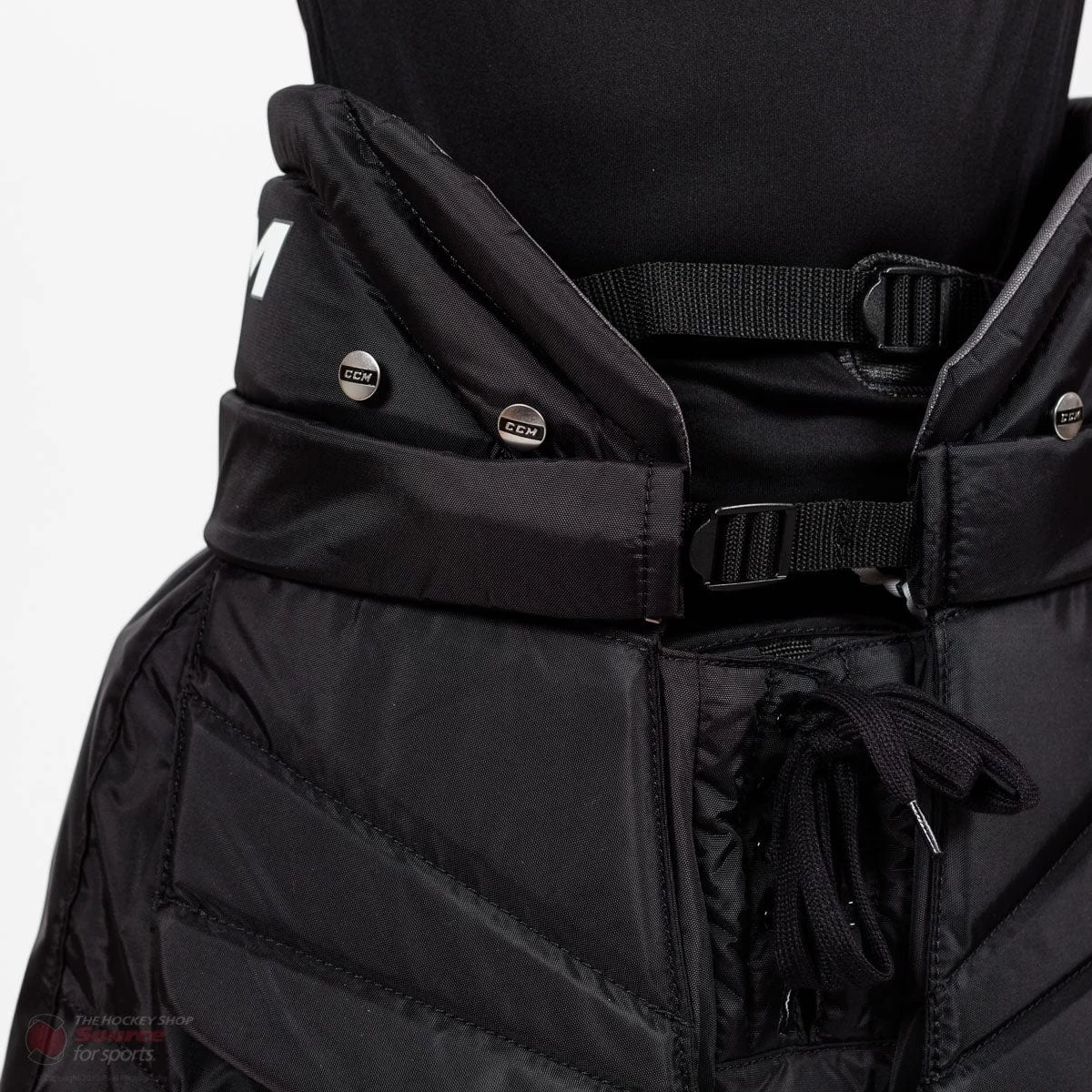 The CCM Premier R1.9 Goal Pant is available in sizes Small through Extra Large, and come in Black and Navy.