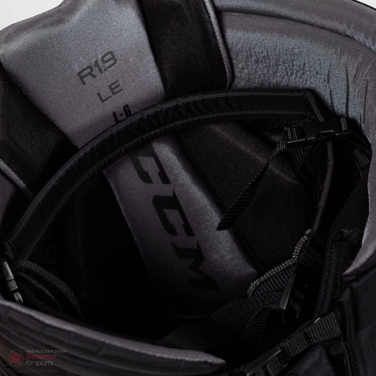 The CCM R1.9 LE goal pant features the segmented PE Foam to help disperse impact away from where the puck hits your body. This is coupled with molded plastic and PE foam to give you the protection you need.