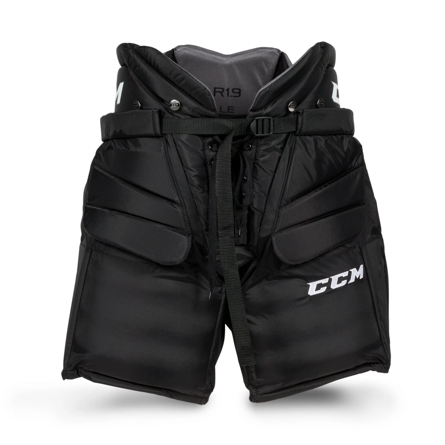 The CCM Premier R1.9 LE Goalie Pants are new for 2019, and is the mid level pant offered in the premier line of protective goalie equipment. The main features of this goal pant are segmented PE foam in the hip and groin, molded plastic with PE foam thigh protection, and an inner belt system to for optimal fit.