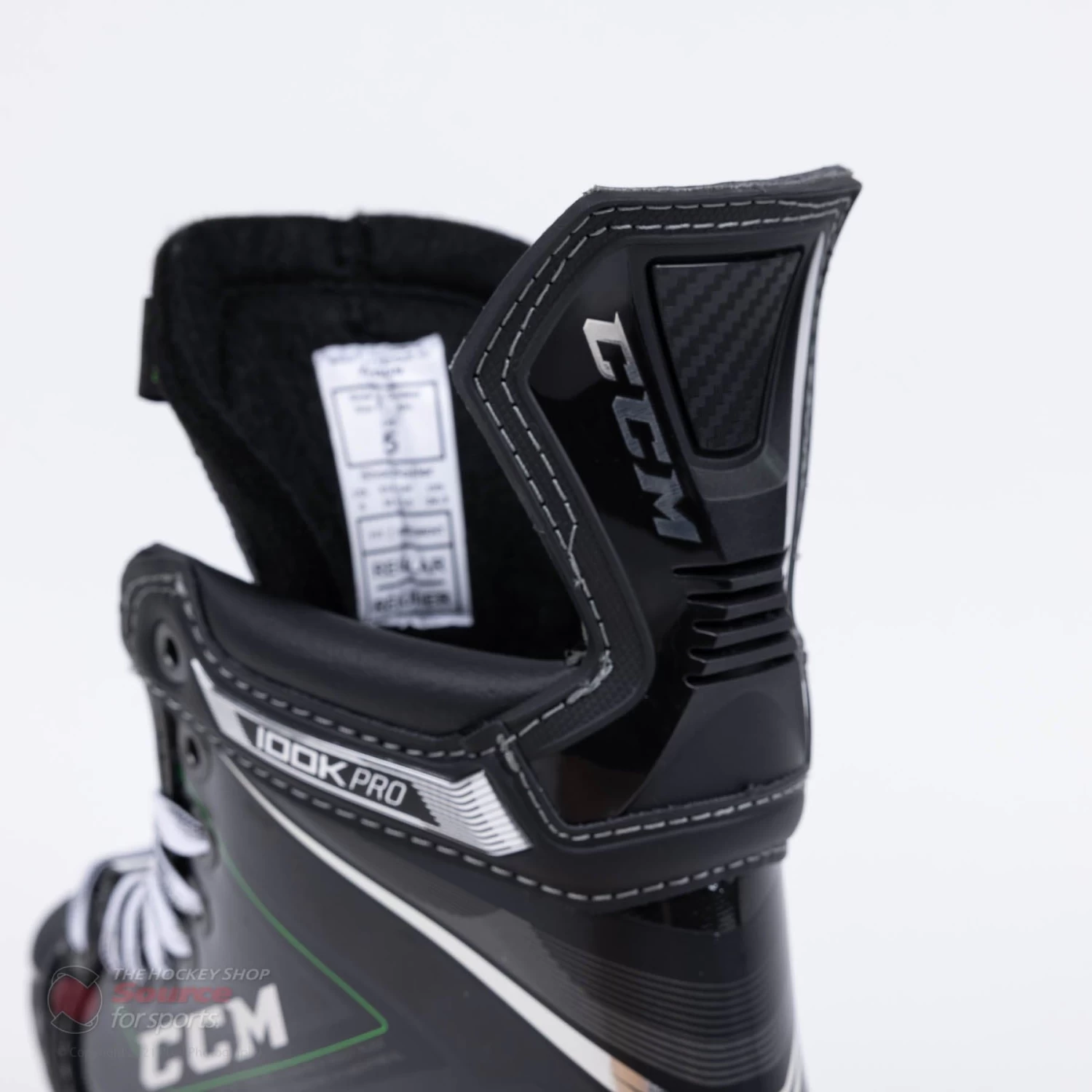 The Ribcore boot will continue to be the softer stiffness level amongst CCM skates. This promotes quick movements and an increased range of motion to maximize your overall agility on the ice. On their stiffness performance index, the 100k Pro comes in at 175-185 variable flex, while the Jetspeed and Tack range to 195 and 215 respectively.