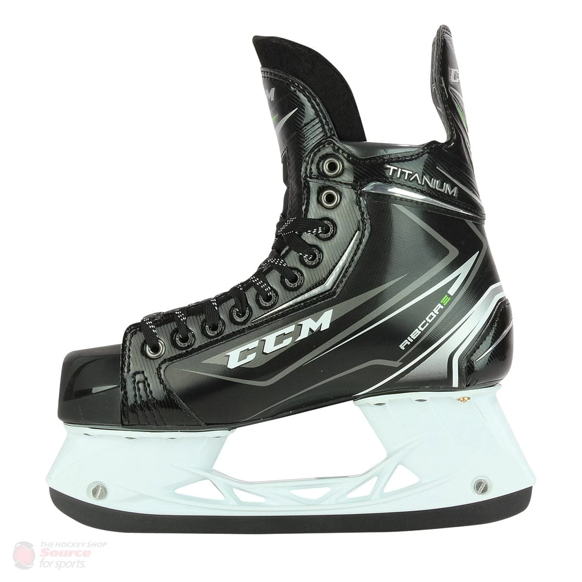 The CCM Ribcor Titanium is a Source for Sports exclusive model that is based on the CCM 44K skate. CCM adds upgrades to skate from higher models to add performance increasing the value and setting you apart. Features such as improved print on the outsole and a lower liner print from the 50K also add unique visual upgrades. Coming over from Reebok, the Ribcor line offers increased range of motion and added flexibility from its predecessor with a sleek blacked-out look. The Titanium features a RIBCOR FLEX quarter package with an injected surlyn mid-sole. This quarter package offers excellent stability and while providing specific flex points to increase power in your stride. As well a 3.9mm HD foam core further reduces weight while keeping the integrity of the boot solid. Another upgrade is the 10mm white felt tongue with EVA foam that has been beefed up to better protect the foot from the laces.