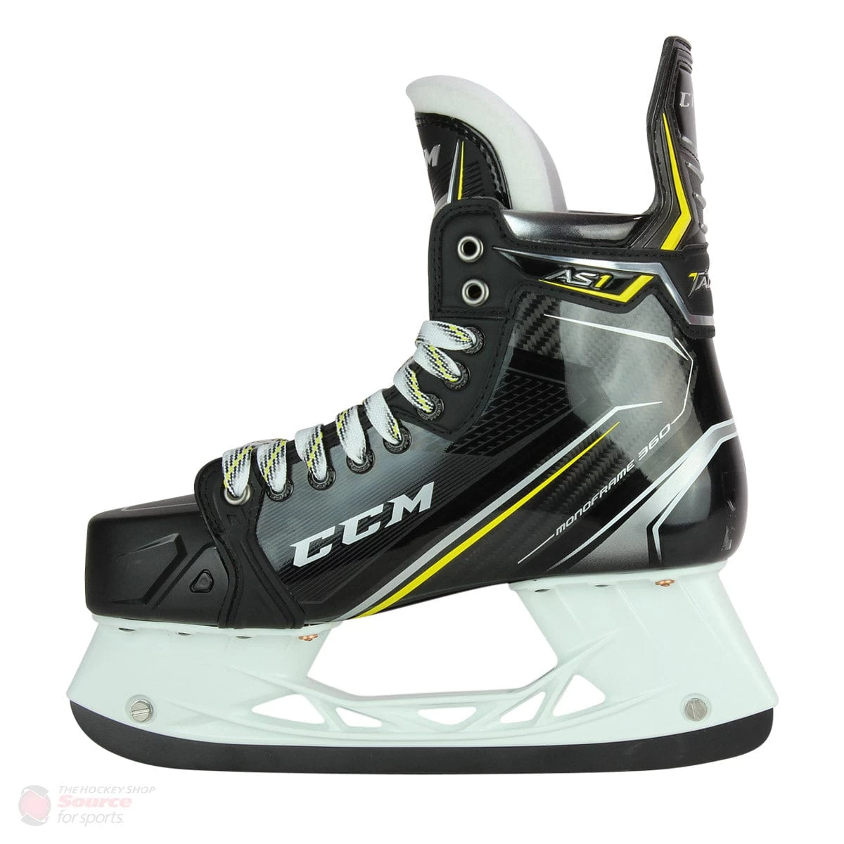 The Monoframe 360 carbon composite boot is a one-piece construction that is a cut above the traditional two-piece boot & outsole construction. Allowing for a better foot-to-skate contact giving the player the advantage of having a better fit, and higher energy transfer throughout their stride. The AS1 carries the full one-piece carbon composite boot with a fully anatomical shaped fit running through to the toe cap but has made a change in the volume. CCM has increased the boot height proportioned to each size offering a more comfortable fit, tighter heel lock, and a better performing boot.