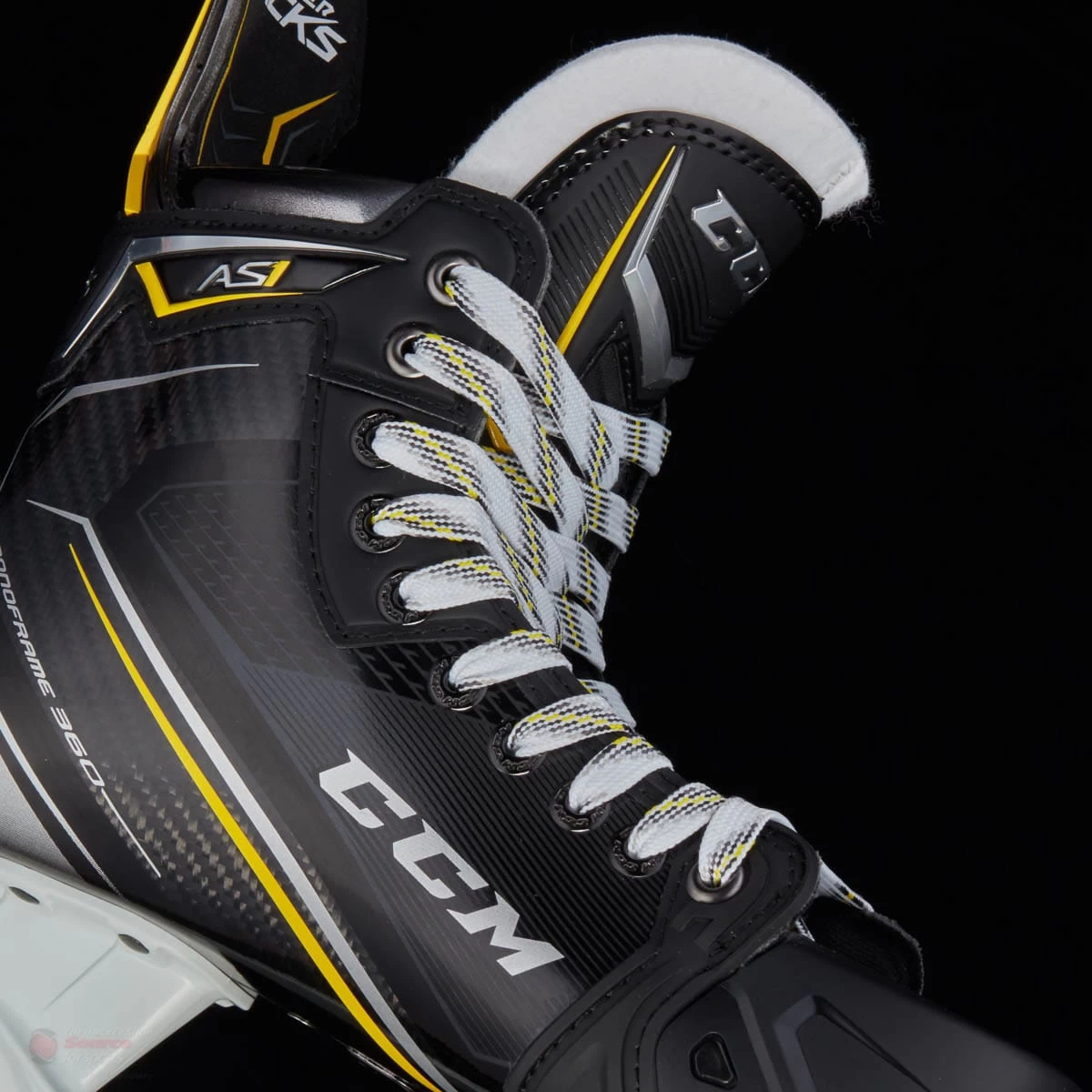 Another upgrade that CCM has incorporated in the new Super Tacks AS1 is the tongue. CCM has used the same design and technology they have put into the CCM Jetspeed FT1 tongue. The Tritech construction featured on the FT1 skate allows the tongue to molded around the player’s feet and ankles. In addition to changing the construction of the tongue, a molded lace bite protection added to the front of the felt provides another barrier from the laces and offers better comfort.