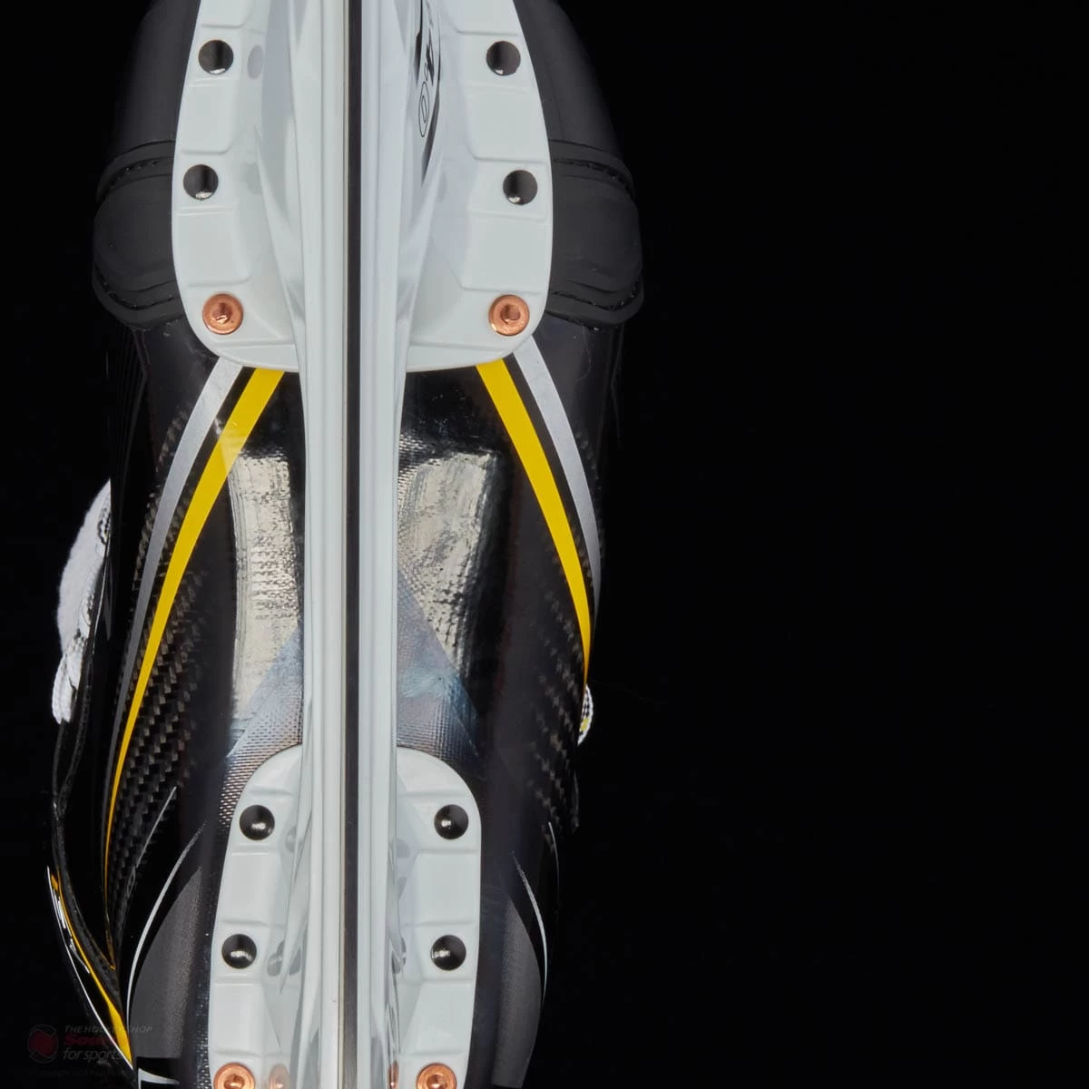 A SpeedBlade holder provides 4mm of extra height from the ice to allow for up to 10% greater turning radius for a more aggressive angle of attack and the SpeedBlade Black steel provides a carbon oxide coating to cut the ice with less friction and provide a longer lasting sharpening as well as advanced performance.
