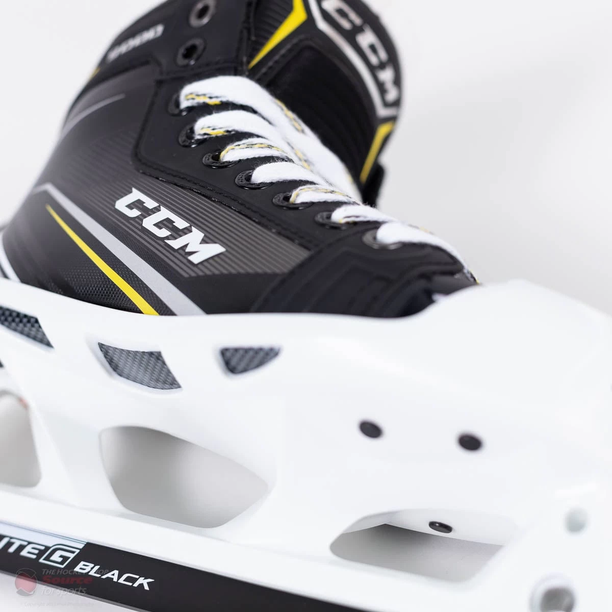 The CCM Tacks 9080 Junior goalie skate is a more affordable version of the Super Tacks AS1 Goalie skate, perfect for a goalie that needs performance but still might be growing.