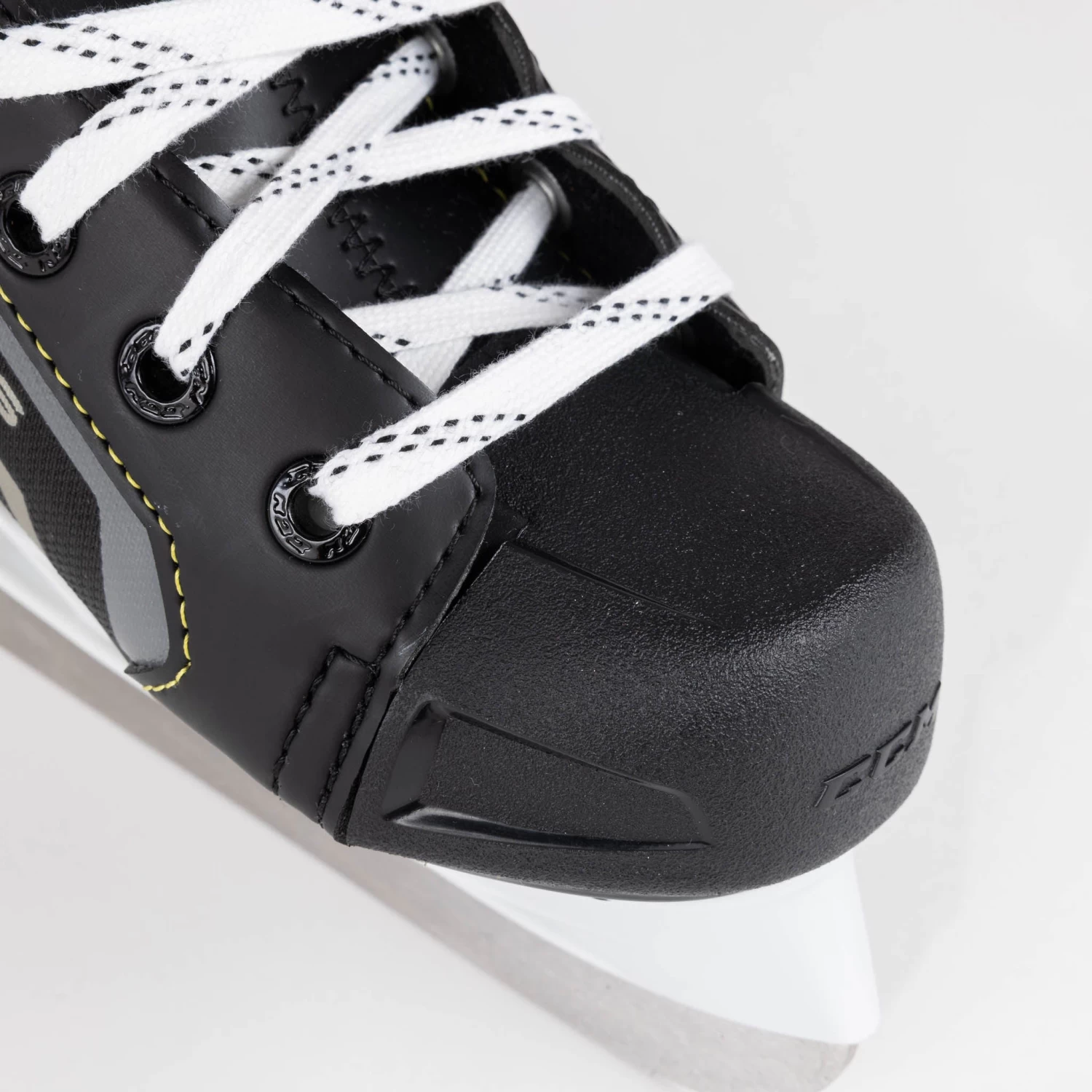 Similar to higher-end adult skates, the tongue on this skate is 7mm and asymmetrical for more flexibility and comfort while skating. In the Youth skate, the eyelets and tendon guard are designed specifically to help both the player and person tying their skates. The Easy-Tie Eyelets are at the top of the skate and use a simple hook eyelet system to make the skate tying process much easier.