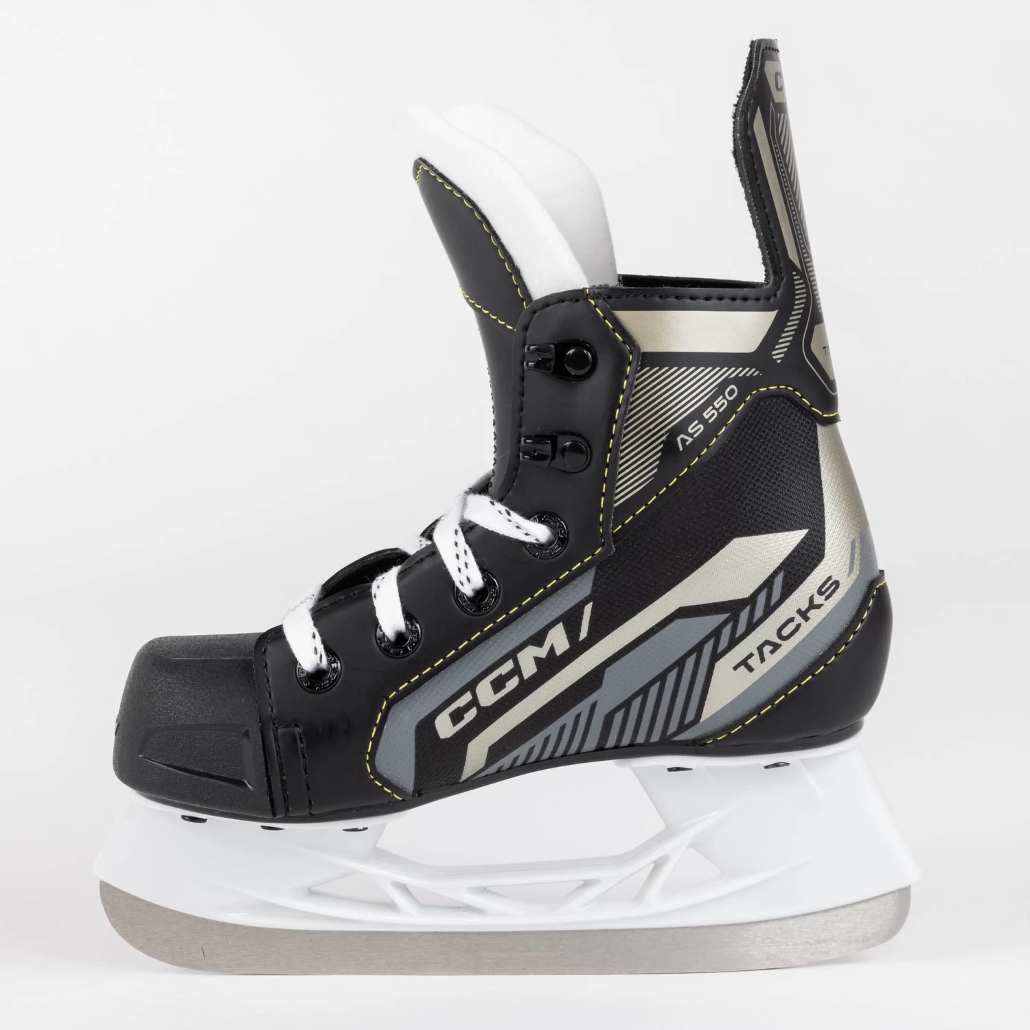 The AS-550 skate has a 115 stiffness rating, which is a much more flexible boot compared to higher-end Tacks skates. Flexible boots are best for players who don’t play hockey as often, as well as those who are just learning how to skate and play the game. This skate will be much easier to break in and skate in for developing players. These skates are only available in Regular fit.