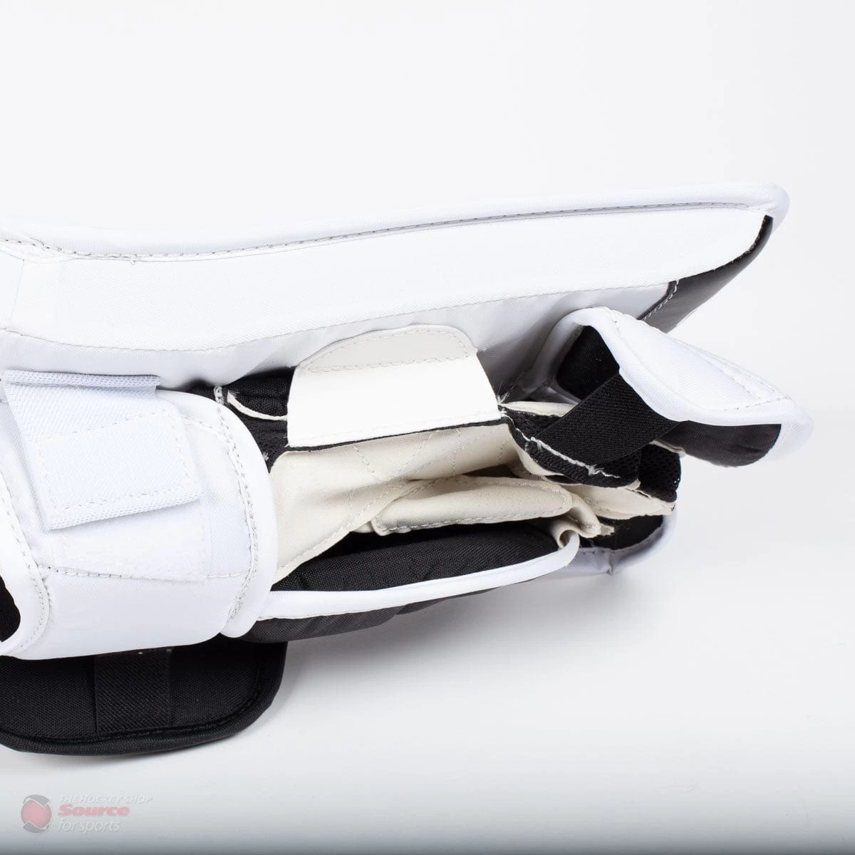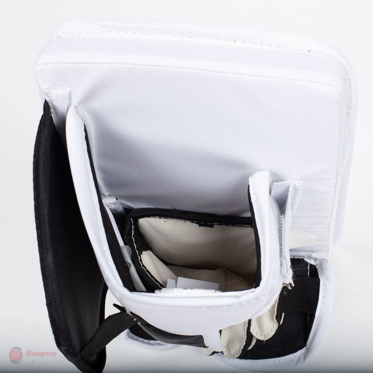 The palm of the CCM Yflex 2 goalie blocker is made of Nash material, and is optimized for feel and comfort. The palm sits in a centered position for great balance.