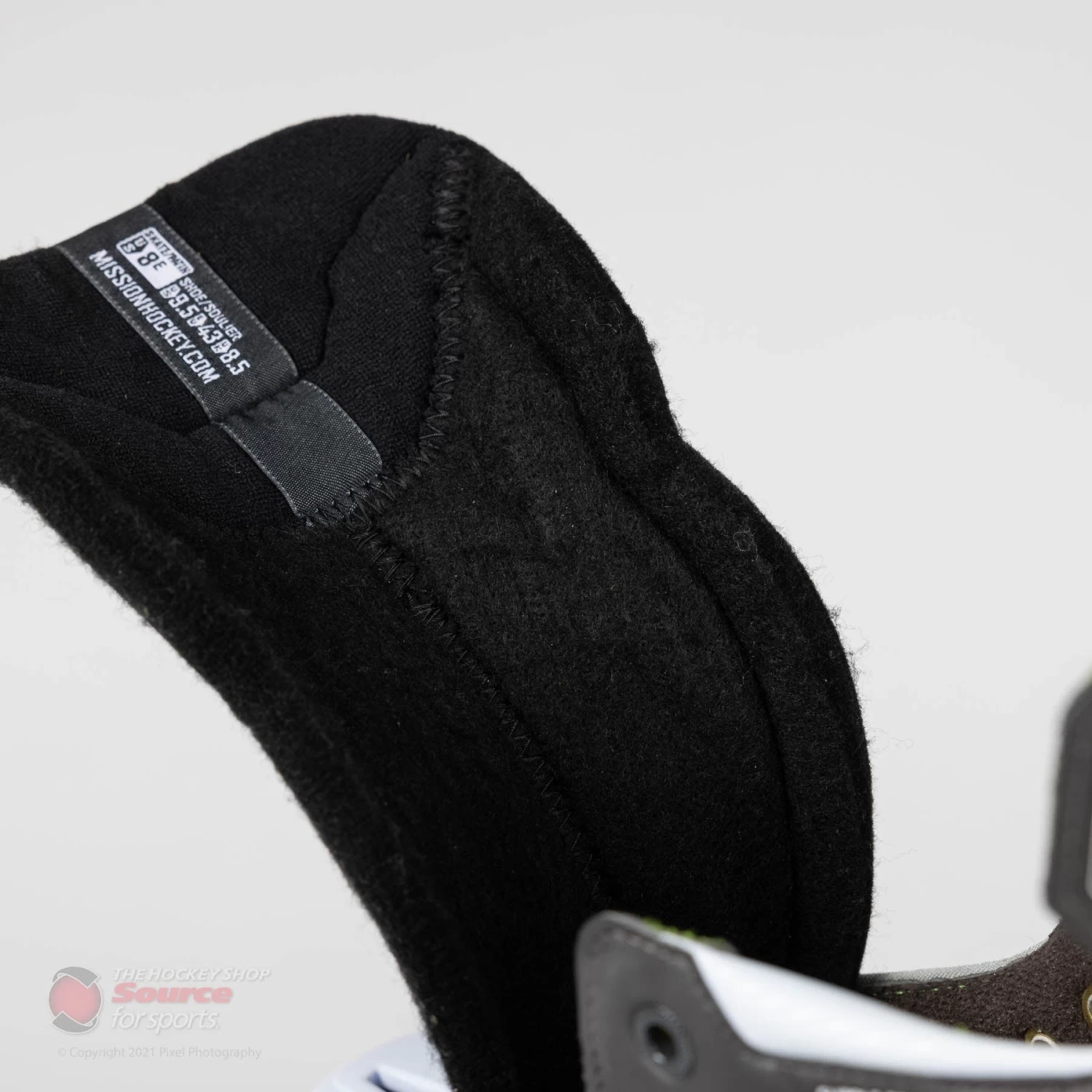 The liner in the Mission WM-02 skates is a two-piece felt liner with reinforced ankle padding. The felt is designed to reduce foot slippage and wasted energy, while maintaining comfort with the soft padding and reducing moisture within the boot. The reinforced ankle padding is implanted to increase comfort in generally a high pressure area. The Supple Comfort Edge at the top of the boot softens an area, mitigating any chance of discomfort while skating.