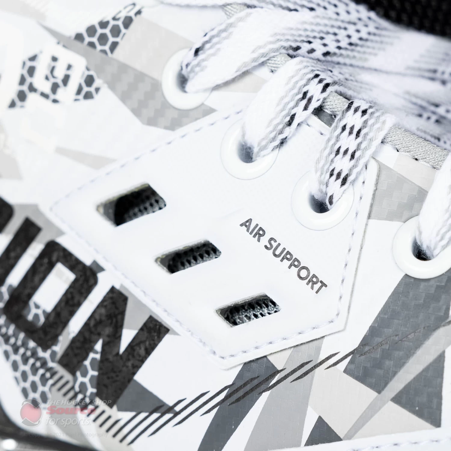 The TRU-FORM Tech PU boot construction is designed for comfort and stability, which features ventilation in the quarter package to increase airflow through the boot. This will reduce moisture within the boot while skating. The abrasion guard reinforces potential high wear areas of the skate to increase the longevity of the boot. The TPU outsole provides stability in the boot and efficient energy transfer in stride.