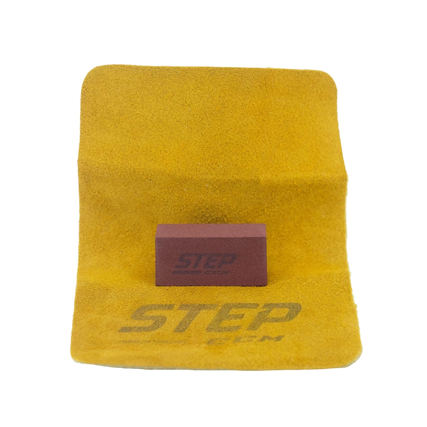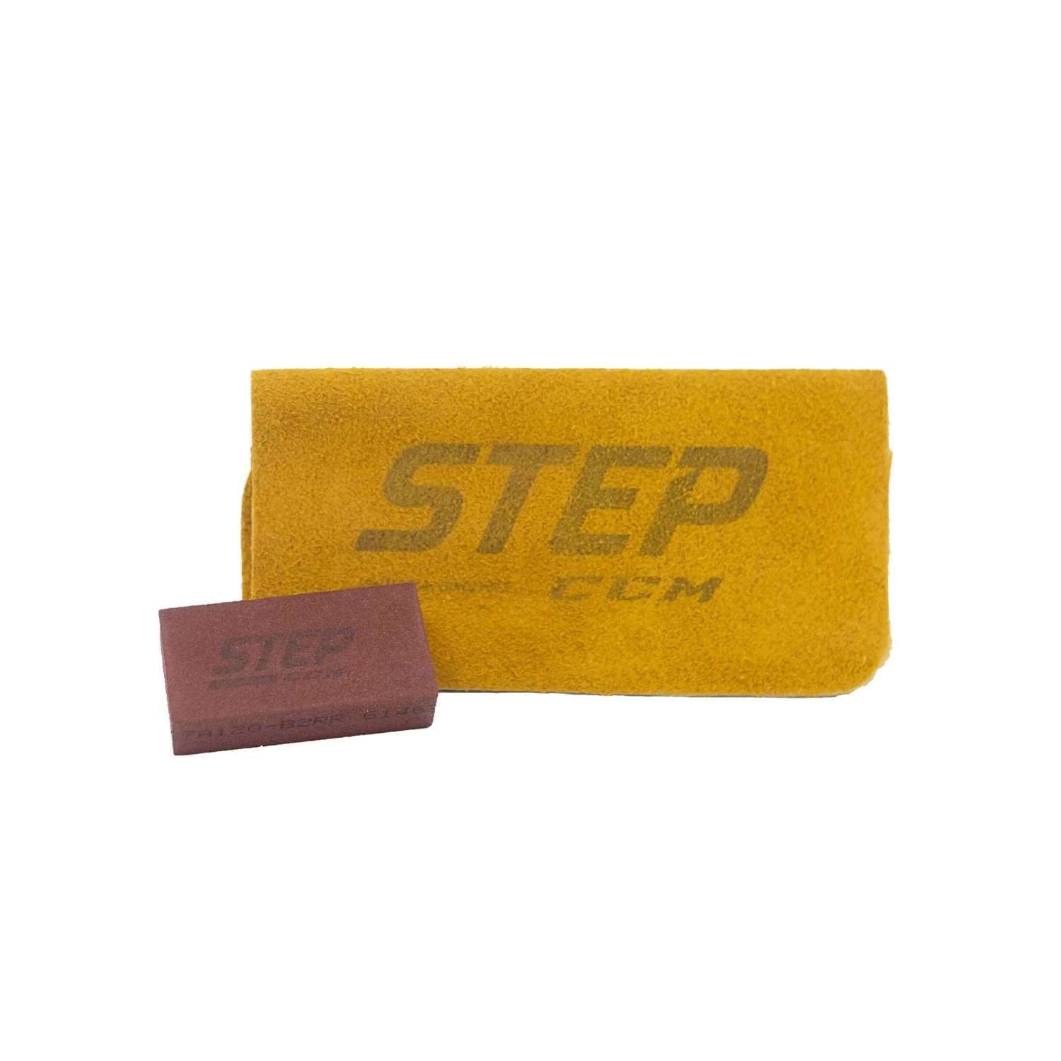 Runners with special coatings like blacksteel, diamond-like coating, and mirror-finished steel can all offer some major benefits to skating and performance. However, when sharpening or making quick fixes before or during a game, these kinds of steel can suffer greatly if you were to use a standard or ceramic honing stone on it. For general care of the blade, STEP came out with a small honing kit complete with a rubber stone and leather cloth. The kit is optimized specifically for Step Blacksteel and V-Steel, but it will work well on other special finishes too.