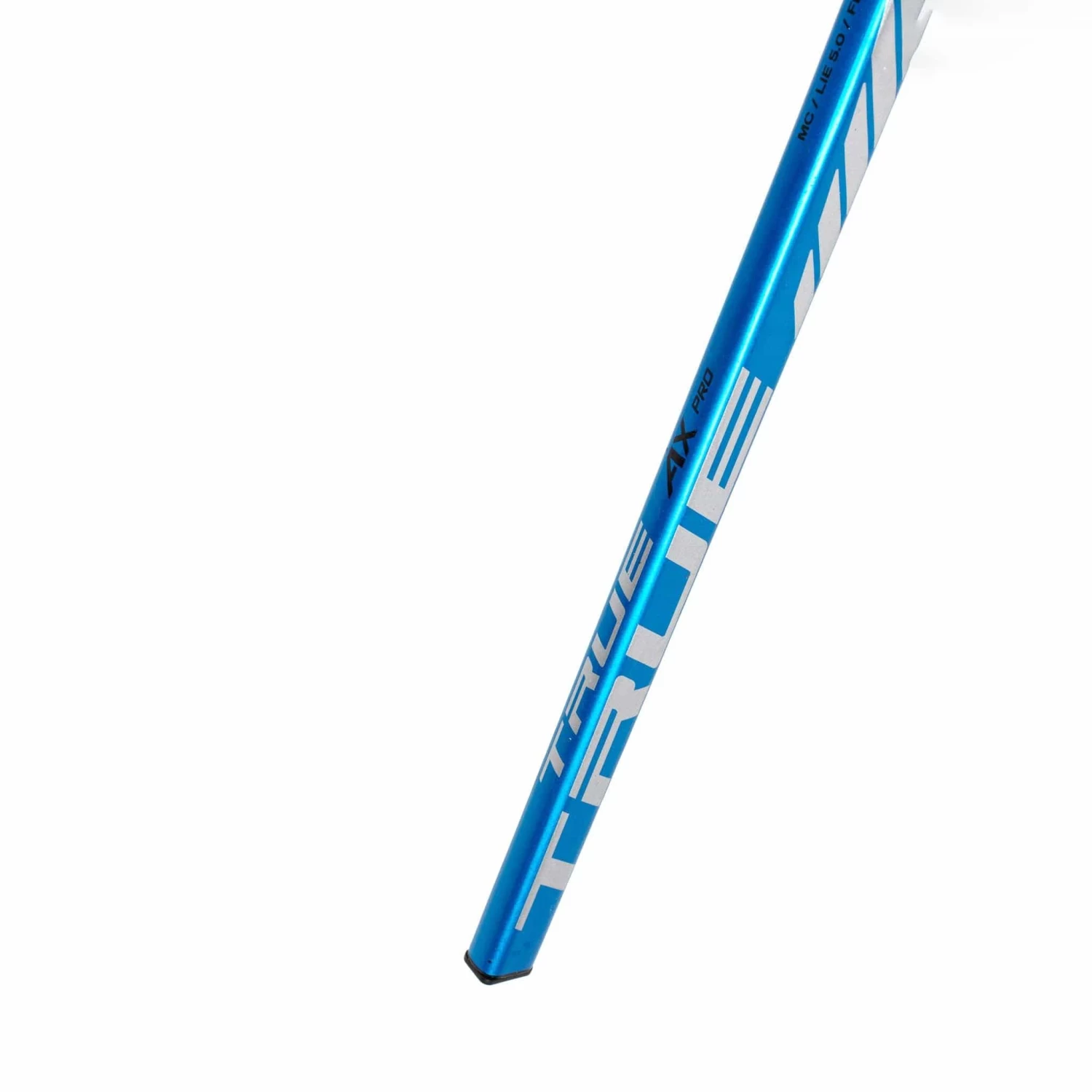 The Source for Sports exclusive True AX Pro Junior Hockey Stick is a hybrid of both the AX5 and the AX3. It features a low kick point, square corner double concave shaft geometry, the BRT+ durable blade, and SmartPly technology which all in all creates a very strong, responsive, and lightning fast stick wrapped up in a Source exclusive graphic.