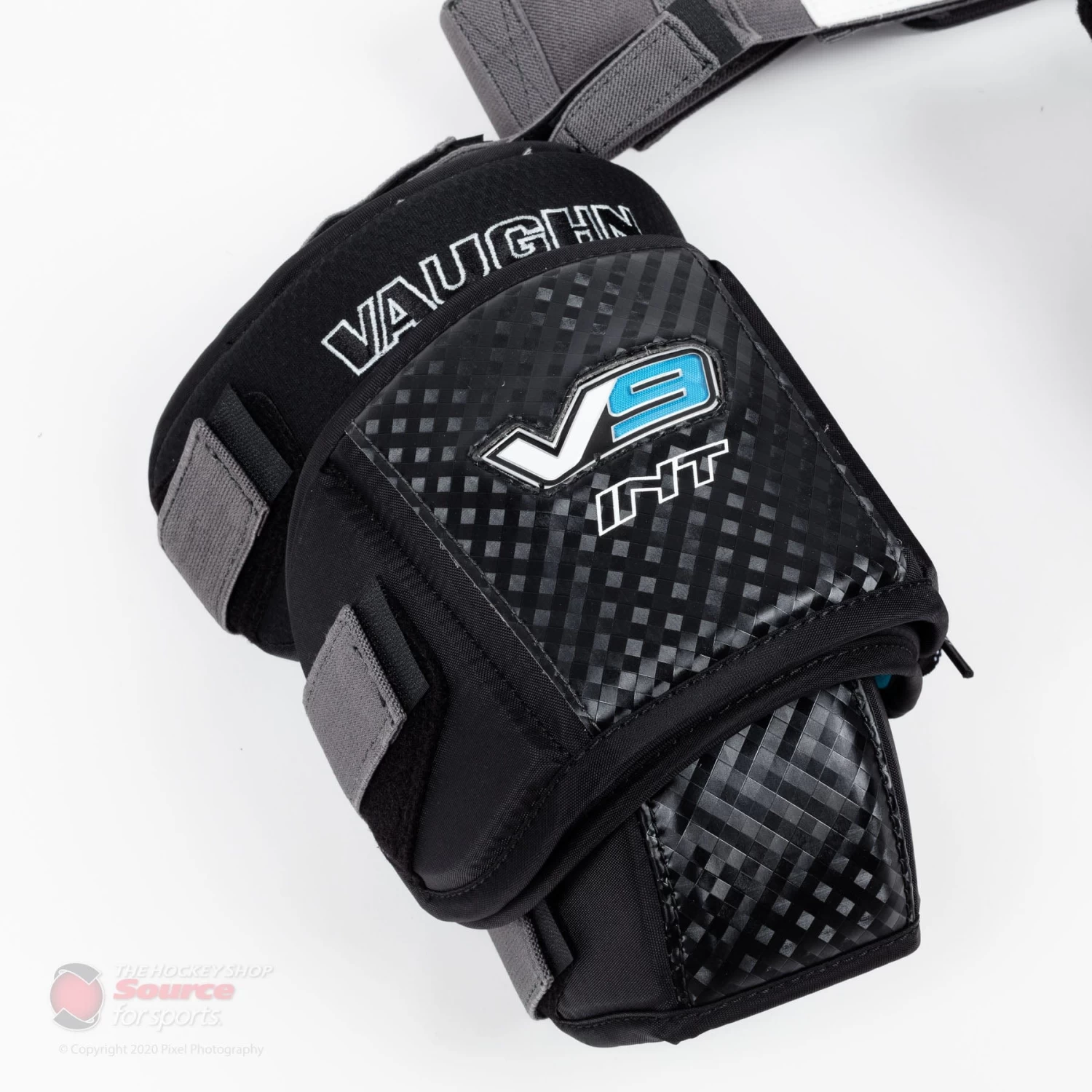 The Vaughn Velocity V9 Intermediate Goalie Knee Pads comes only in a black/blue colourway in an intermediate size.