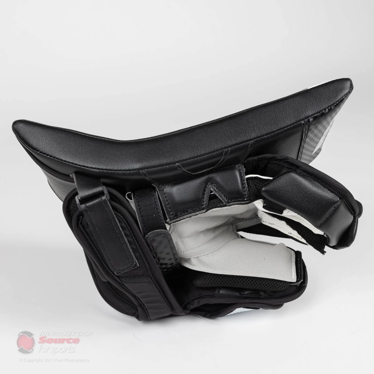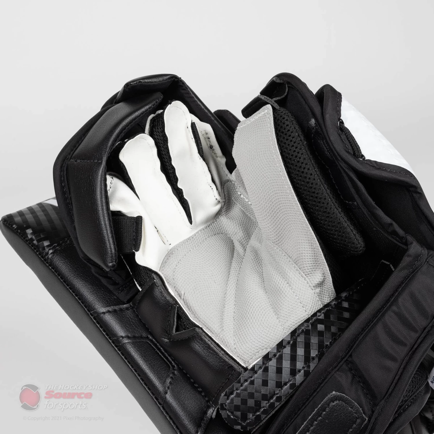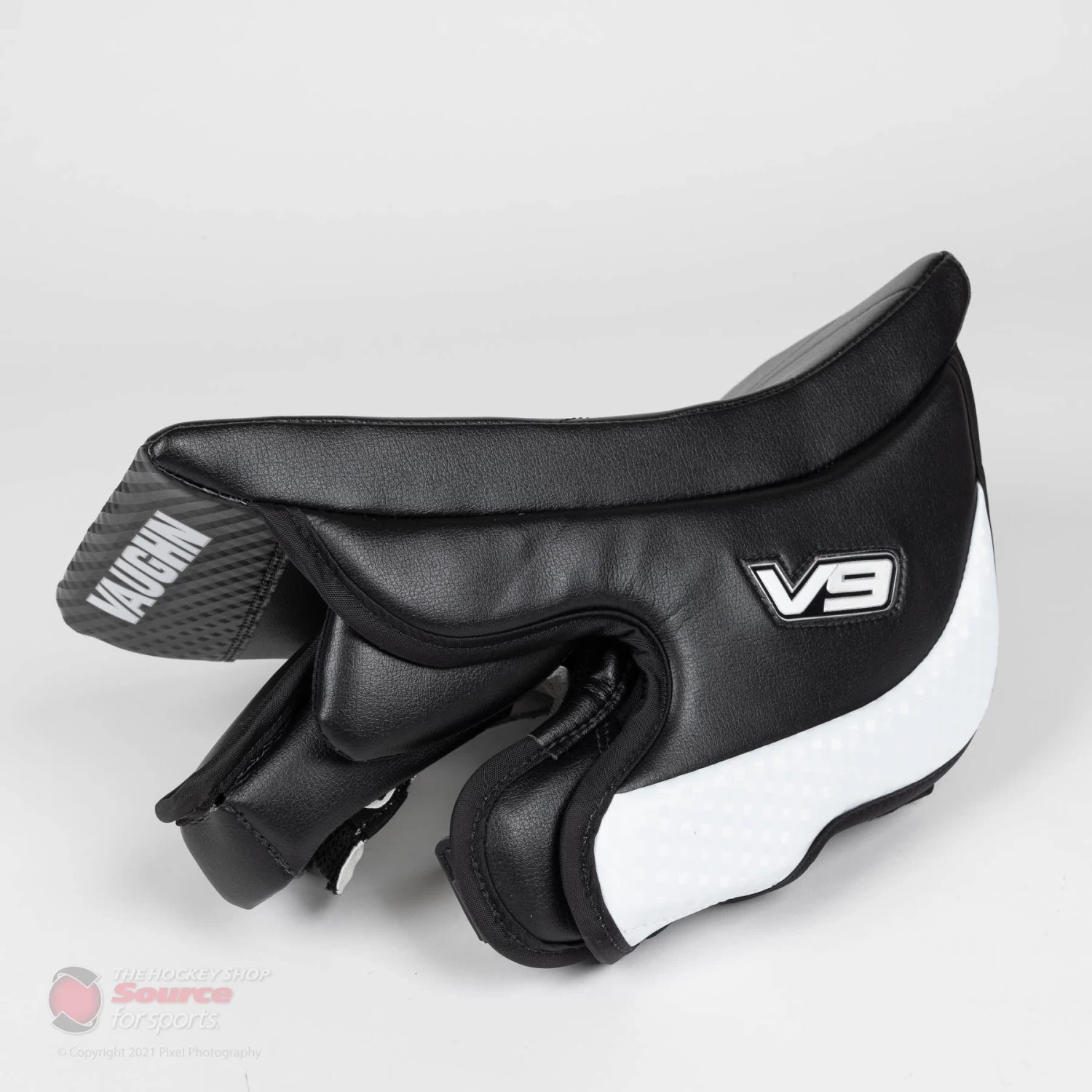 The thumb of the V9 Pro Carbon uses a moulded Pure Carbon insert in order to offer superior protection while the finger guards use a composite core and HD foams. The back of the fingers use HD foam padding to catch anything that passes by the large finger protectors. Finally, a large sewn in floating index finger protector sits flush with the stick to catch pucks riding up the paddle.