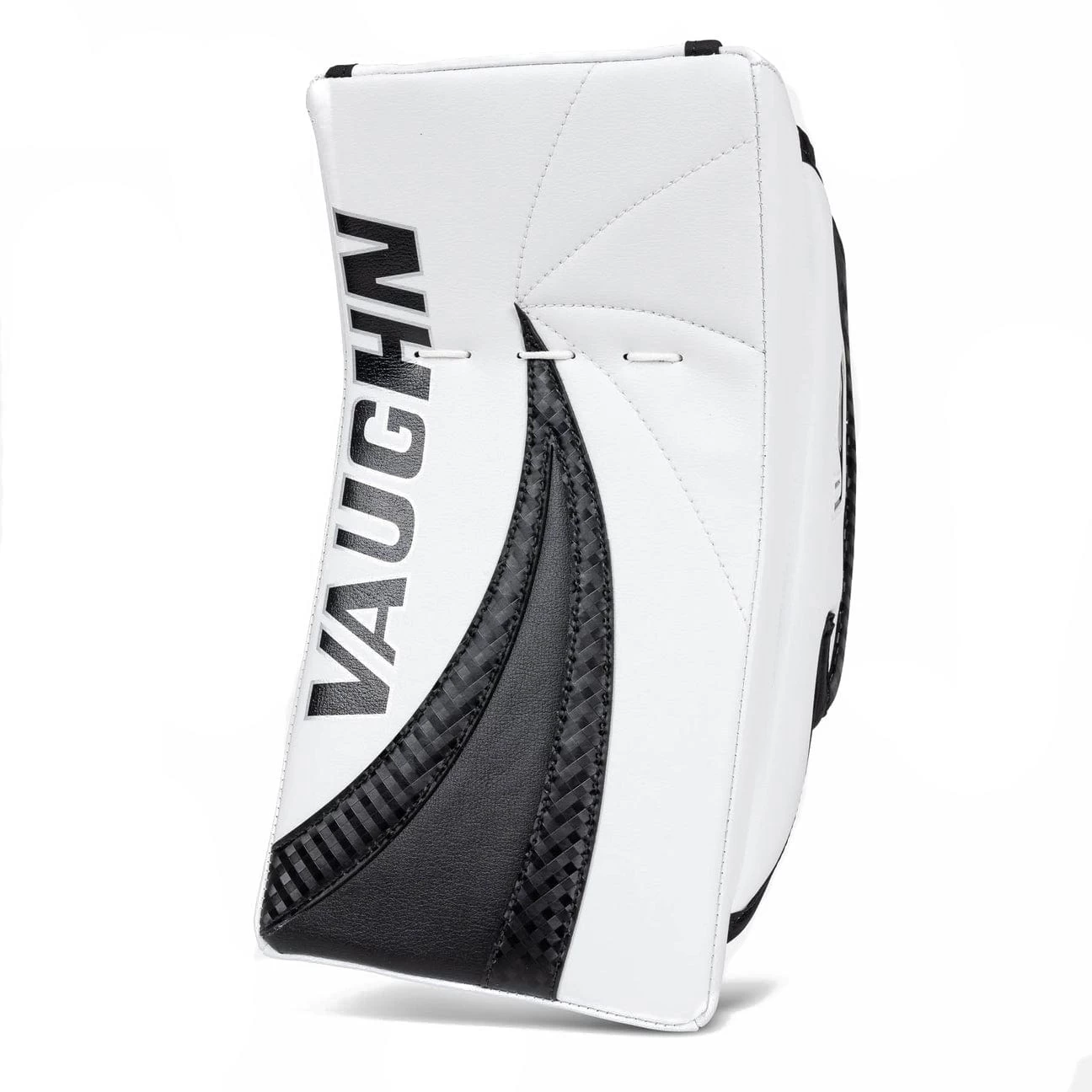 The Vaughn Velocity V9 Pro Carbon SR Goalie Blocker is designed for the elite goaltender who wants a lightweight balanced blocker. The V9 Pro Carbon features a bindingless board design offering maximum coverage along with Pure Carbon inserts on the face of the board, sidewall, thumb and composite finger protector offering superior protection, stiffness and reinforcement. A redesigned soft, comfortable nash and suregrip palm features a seamless index and small finger offering a more comfortable and durable feel while a thumb pillow and a soft padded cuff offers increased protection. Finally, as with all pro level Vaughn gear, custom colours, graphics and other options are all available.