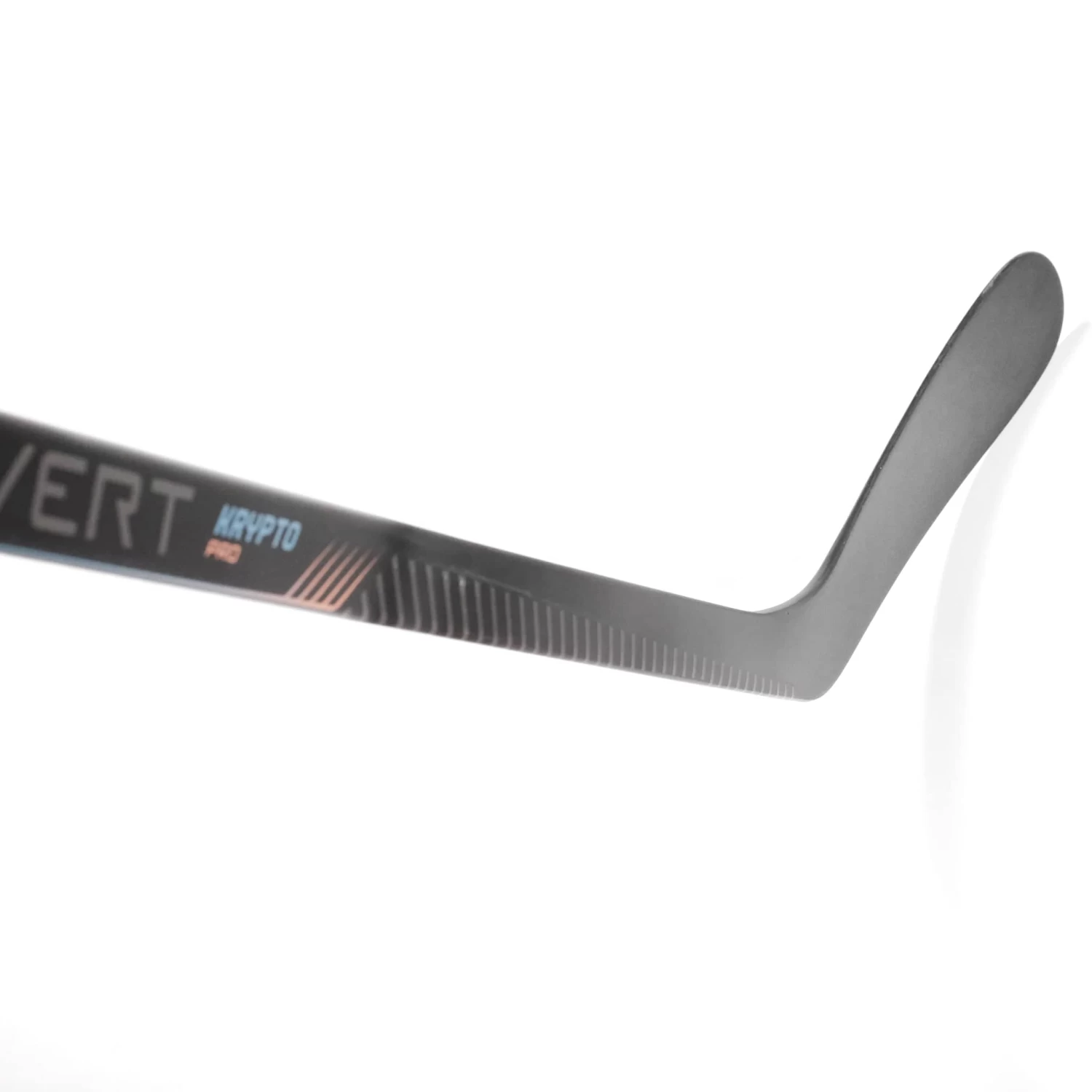 The Krypto Pro is part of Warrior’s Covert line, making it a low kick hockey stick. Rather than empowering shots by storing more energy higher up in the shaft, low kick sticks excel at releasing the puck quickly off the blade by bending lower and closer to the hosel. The Covert line specifically is known for having a lower kick point than standard low kick sticks, which allows for an even quicker release.