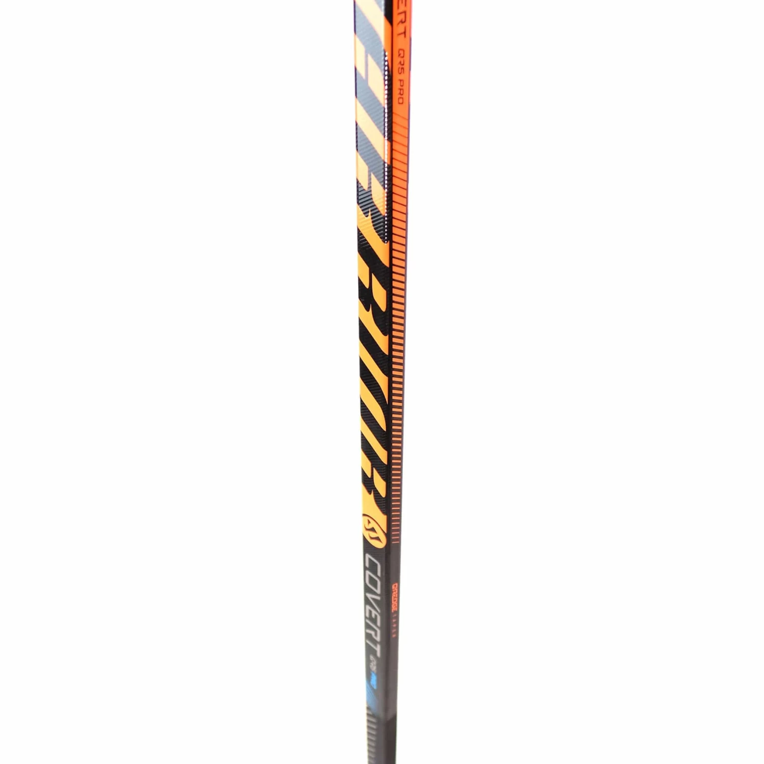 This rendition of the Warrior Covert line is mainly orange at the top and black at the bottom, with blue and orange accents. The Covert, Warrior, and QR5 Pro logos are all visible on the shaft.