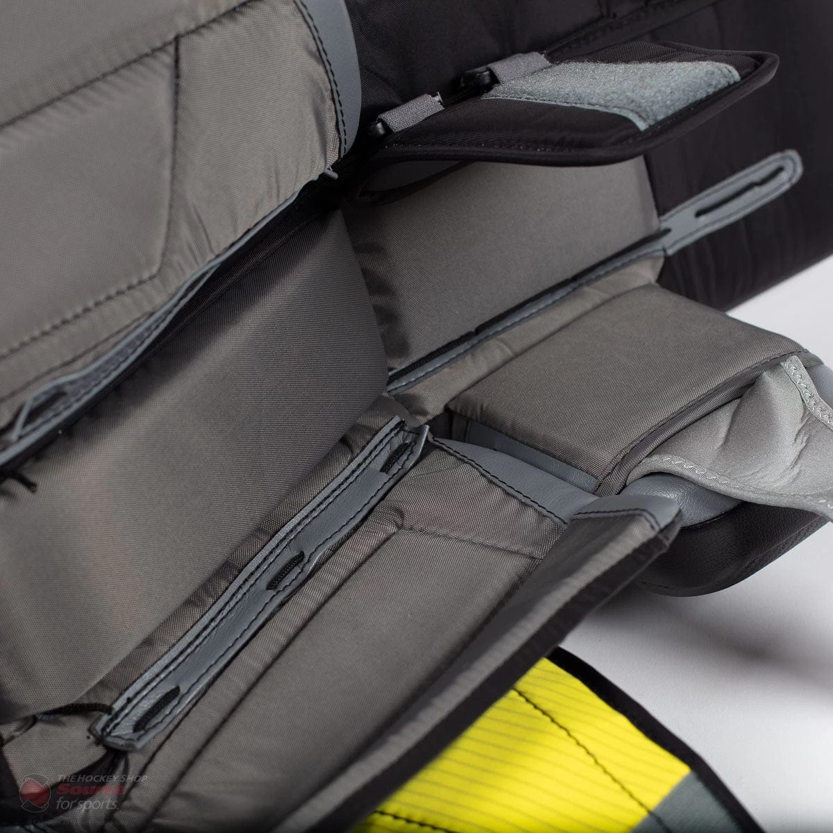 The knee cradle is bigger and more adjustable on the Ritual GT2, preventing goalies from missing or falling off their knee cradle, allowing goalies to be more stable in their butterfly than ever before. For goalies that prefer a tighter knee cradle, Warrior has added in an adjustable knee flap for a tighter fit.
