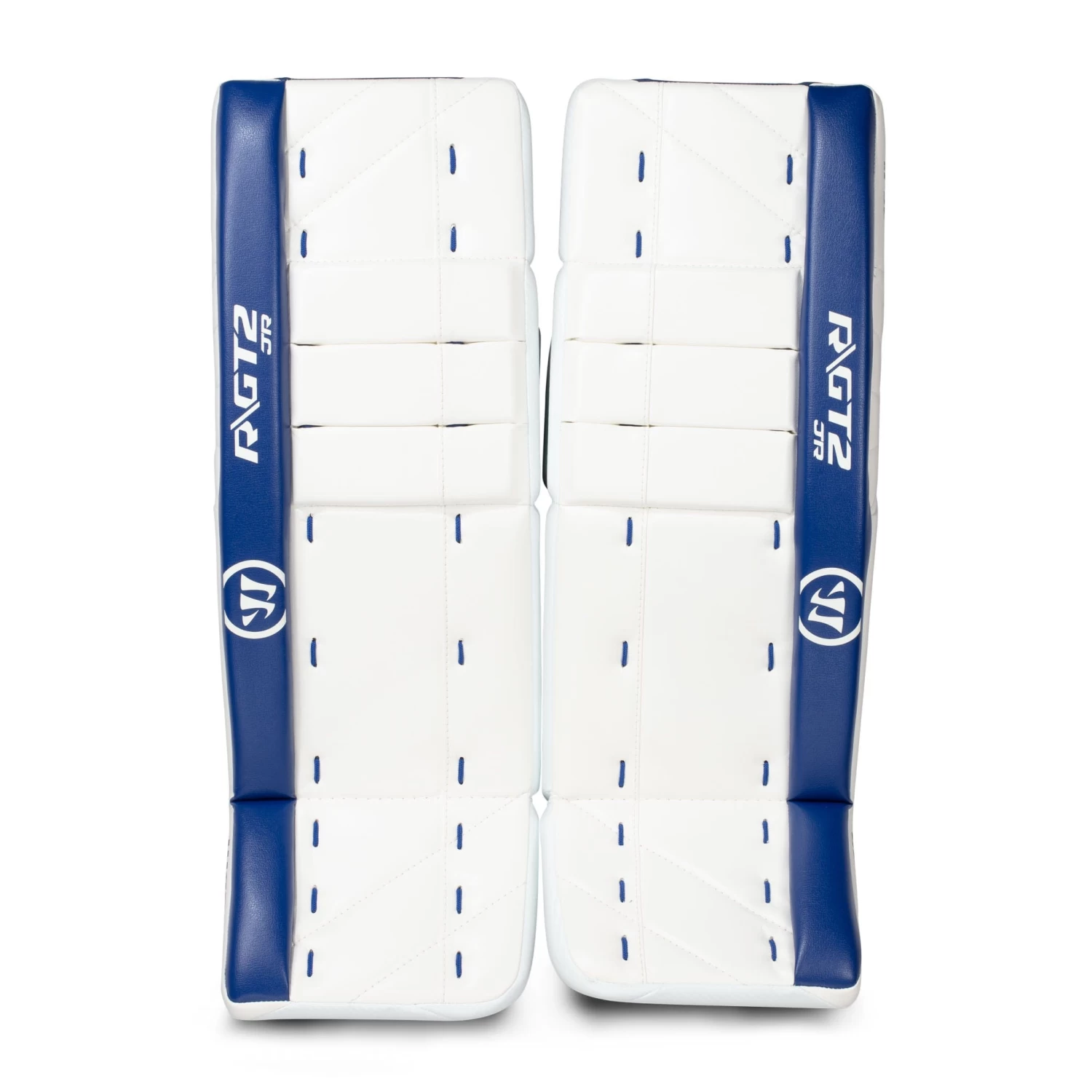 The Source Exclusive GT2 Pads feature 3 colorways separate from the catalog GT2 Pads; Black/Black/White, White/Black/Red, and White / Blue. Warrior sizing can be a little different than other brands, with junior sizes begin at 24+1 inches.