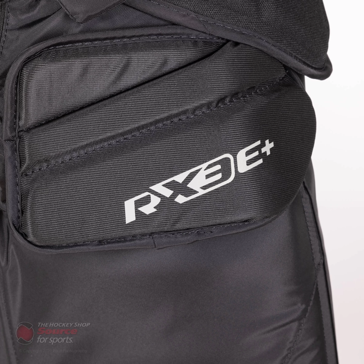 The Warrior Ritual X3 E+ INT Goalie Pants has new redesigned kidney and hip protection. The Warrior X3 E+ goal pants feature HyperComp in the FlexPlates to improve the durability and protection in those areas. The Ritual X3 E+ pants have added AxyCut Design which maximizes the thigh protection, as well as reinforced high wear areas on the pants.